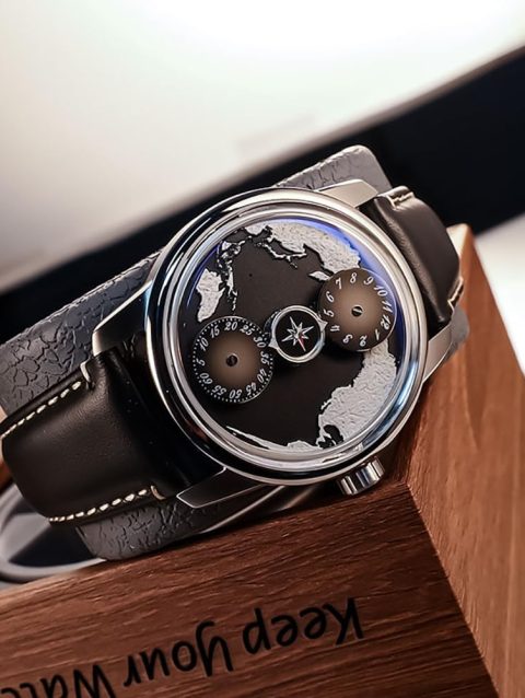 OBLVLO Luxury Designer Mens Earth Dial Leather Automatic Watch Three Wheels Stainless Steel Case Blue Luminous Leather Mechanical Wristwatch JM-Earth