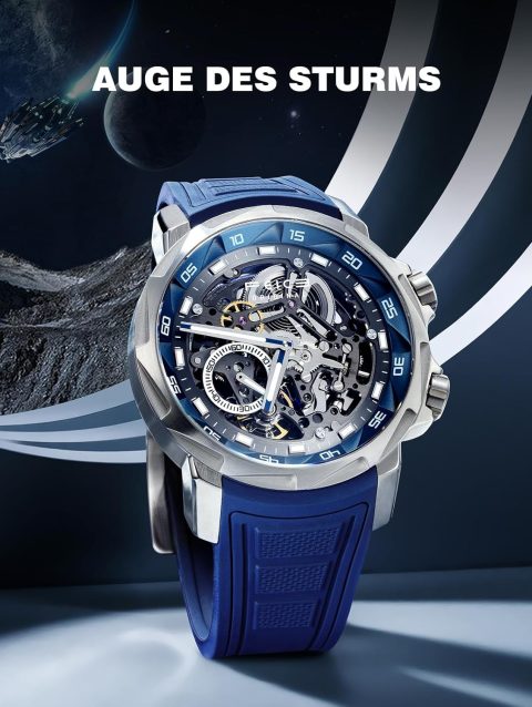 FEICE FM511 Men’s Automatic Skeleton Watch, Luxury Sapphire Crystal Glass Blue Dial Luminous Hands, 5ATM Waterproof Sport Wristwatch with Silicone Strap for Men, Casual Mechanical Watches for Men.