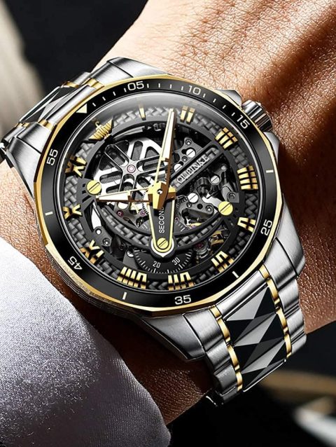 OLEVS Men Automatic Skeleton Mechanical Watch Stainless Steel Luxury Classic Business Waterproof Luminous Wristwatch