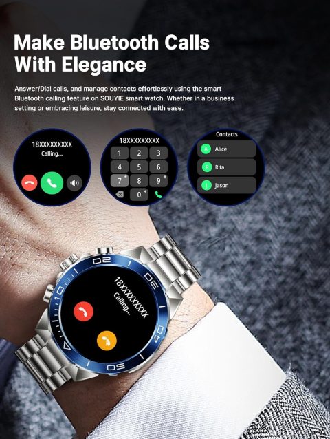 SOUYIE Smart Watch for Men,1.43”AMOLED Screen with 24 Hours Healthy Monitor, 100+ Sports Modes Fitness Tracker Watch, High-Capacity Battery Pedometer Calorie Smartwatch Compatible Android iOS