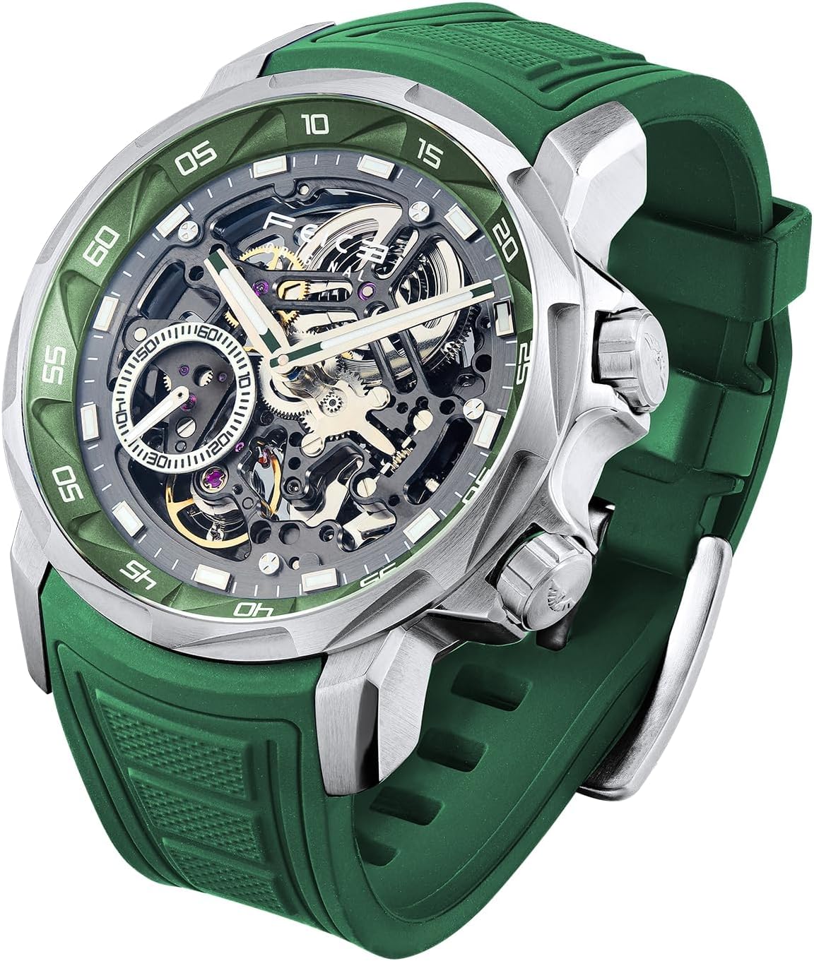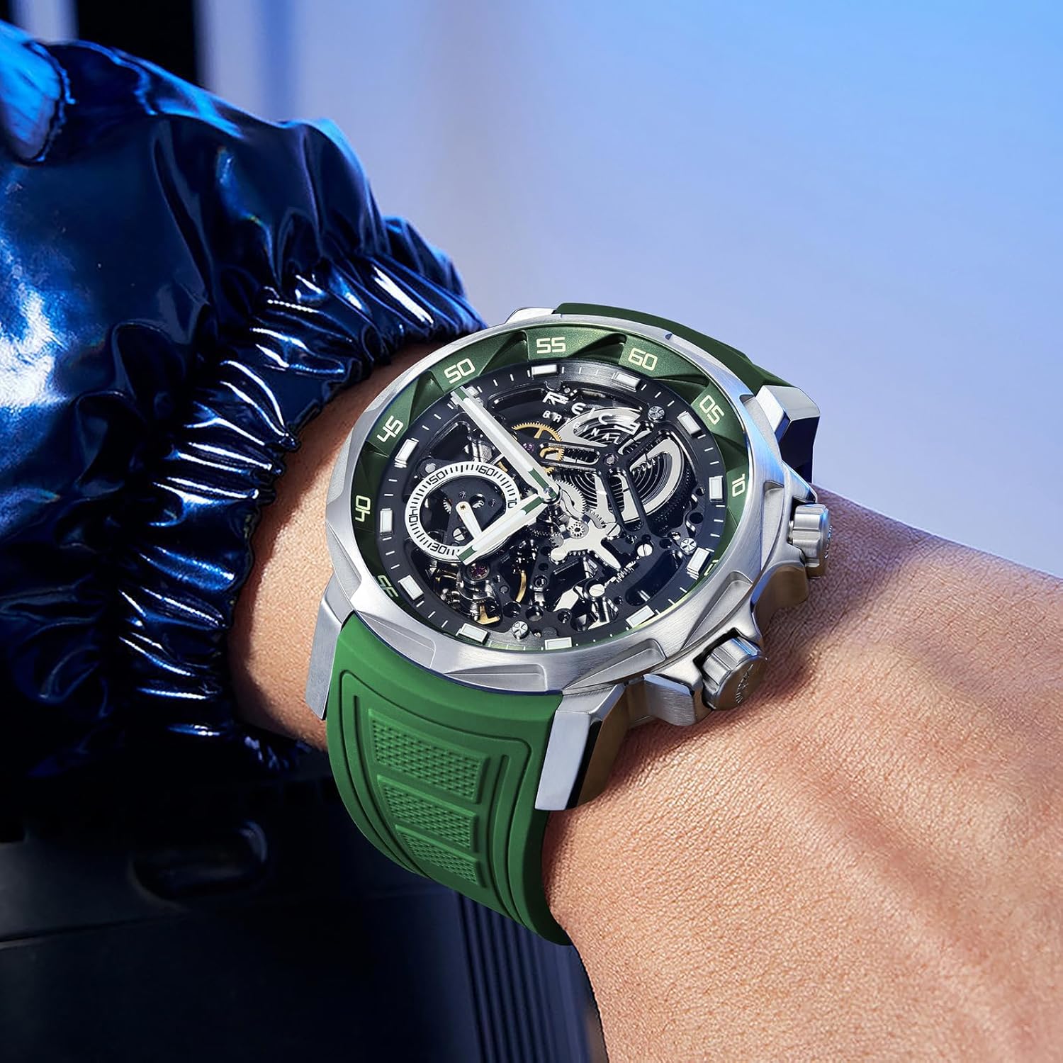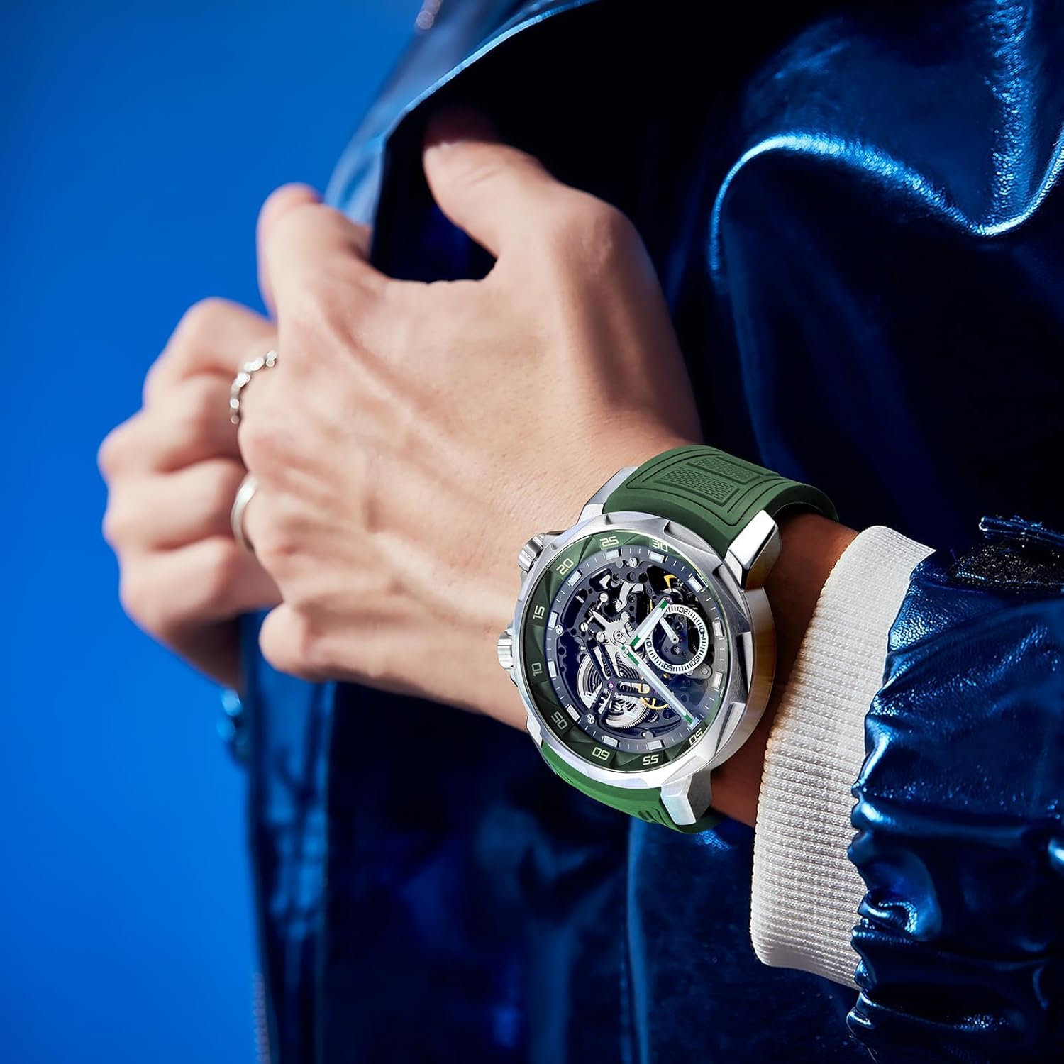 Add to cartFEICE FM511 GREEN Men’s Automatic Skeleton Watch, Luxury Sapphire Crystal Glass Blue Dial Luminous Hands, 5ATM Waterproof Sport Wristwatch with Silicone Strap for Men, Casual Mechanical Watches For Men.