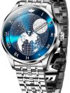 FEICE FM511 Men’s Automatic Skeleton Watch, Luxury Sapphire Crystal Glass Blue Dial Luminous Hands, 5ATM Waterproof Sport Wristwatch with Silicone Strap for Men, Casual Mechanical Watches for Men.