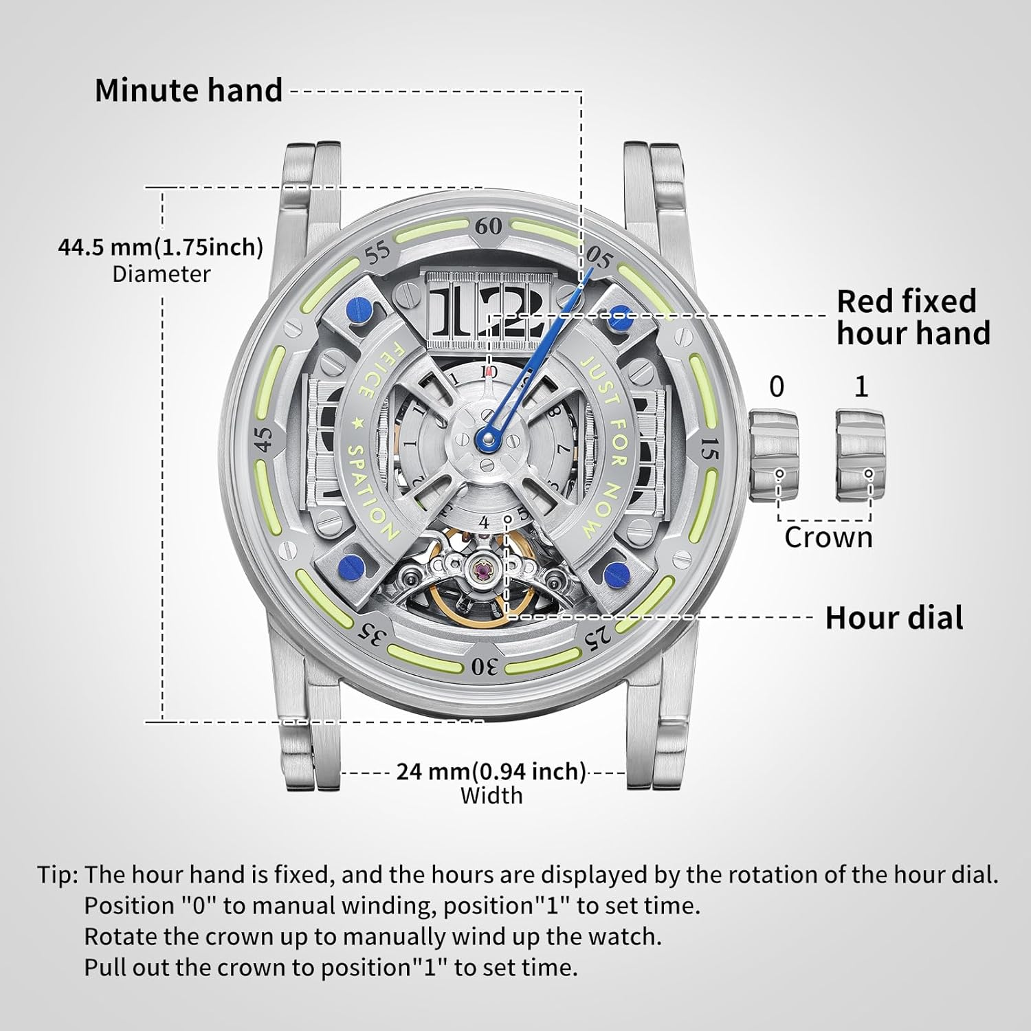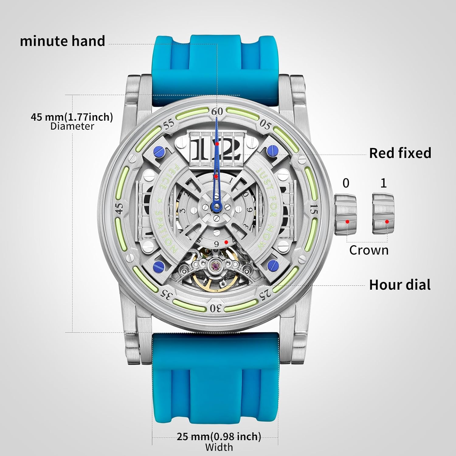 Be the first to review “FEICE Watch for Men’s Automatic Mechanical Skeleton Watch Titanium Steel 50M Waterproof Mens Wristwatch Luminous Analog Watches No Battery Silicone Strap, FM501 Blue” Cancel reply