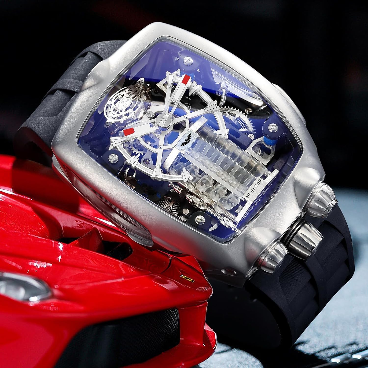 FEICE Watches for Men Automatic Skeleton Watch Waterproof Mineral Glass Japanese Movement Supercar Wristwatch Anti Shock Business Tourbillon FM666